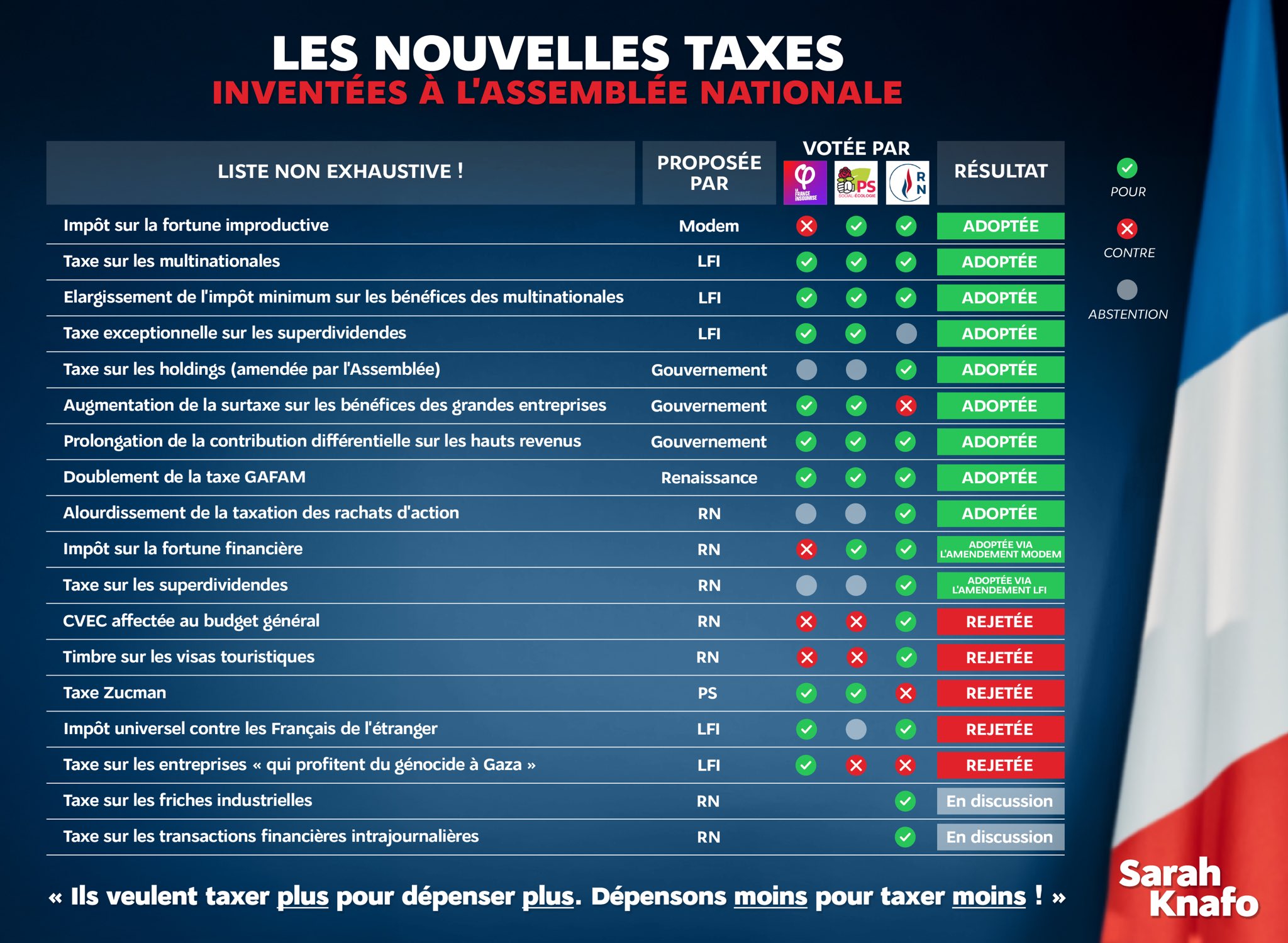 Assez de taxes. 26 milliards d’impôts de plus, c’est 26 milliards de trop. La seule issue, c’est la baisse des dépenses, pour pouvoir enfin baisser massivement les impôts.